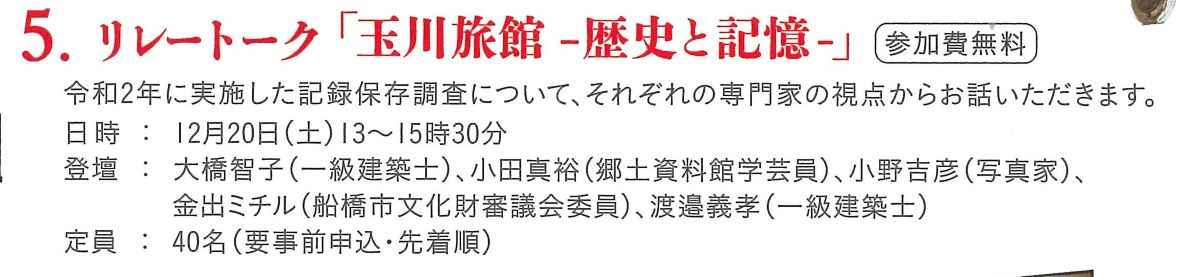 船橋市湊町で約1世紀に渡り、船橋を代表する社交場・宿泊施設として多くの人々を迎え入れてきた「玉川旅館」が令和2年、創業100年の歴史に幕を下ろしました。