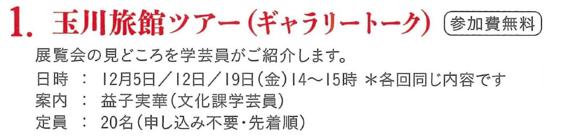 ※ギャラリー(3F)の展示は、台風等の荒天により開催時間を変更する場合がありますので、当館にお問い合わせ下さい。