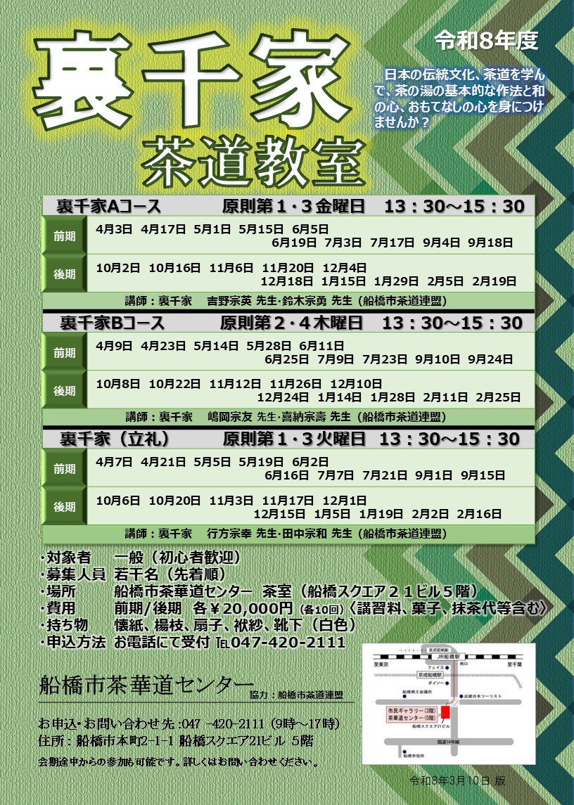 茶華道センター(5F)のご利用に関しては直接,利用団体にお問い合わせ下さい。